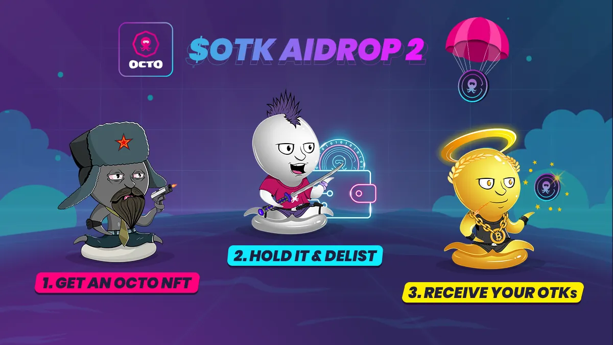 Don't miss out on this opportunity to earn some free OTK tokens and be a part of the Octo Gaming's community. Stay tuned for more information and updates on these airdrops on Octo Gaming Twitter and Discord.